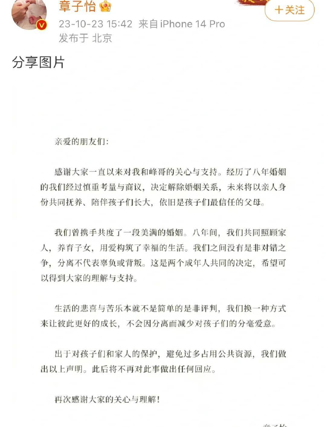 可在2年前,两人突然在社交平台上宣布了离婚,这段感情也没有走到最后,这一路看来子怡的感情道路也是非常曲折了。